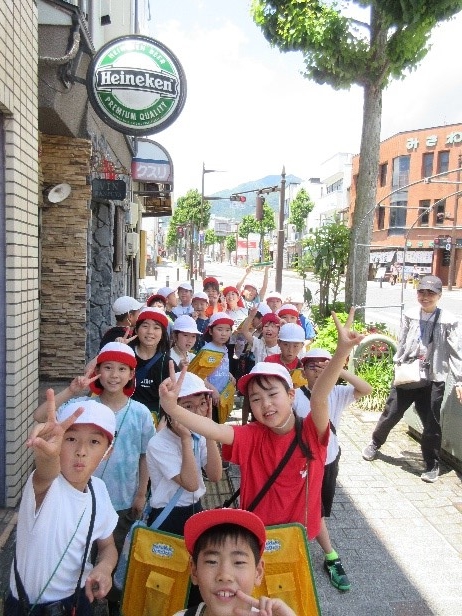 今日、社会見学がありました。さいしょにキラヤに行っておかしを買いました。なるべく300円にしようと思って買ったのですが、400円になってしましました!1つのおかしをへらしたら、300円いないになったのでよかったです。次にお店のおくに行ってお肉をひやしてあるところに入りました。その温度は4~8℃のところに入ったら寒かったです。けど、魚を冷やしているところは-20℃くらいなのでもっともっと寒かったです。あさひまつ食品で高野豆ふをさわりました。こおらせていない豆ふはかた手でもちぎれました。けど、3時間こおらせたのは、ちぎれるかんじもちがうし、つめたかったです。ちょっとやわらかくなったのもさわったら、やわらかいけど、中がしっかりしていてりょう手じゃないとちぎれないかんじですごかったです。さいごに行ったところでは、昔の道具を体けんしました。今とはぜんぜんちがうのでなんだか分からなかったけど、体けんしたら「これは○○だ!」と分かりました。体けんできてとっても楽しかったです。一度きりの3年生の社会見学、とっても楽しかったです!(児童の日記より)