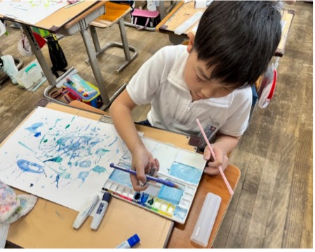 【4年生】お気に入りの模様 図工の授業で絵の具を使った表現学習を行いました。ストローを使った吹き流しや筆のドリッピングなど5種類で楽しみました。みんなで楽しんで作り、友だちと見合ったり教え合ったりしながら、思い思いの絵を完成させていきました。 ホームページ管理者2025-08-11T13:11:25+09:002024年04月29日|