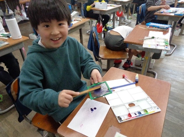 図工では、 スパッタリング・ドリッピング・デカルコマニー などの技法に親しみました!