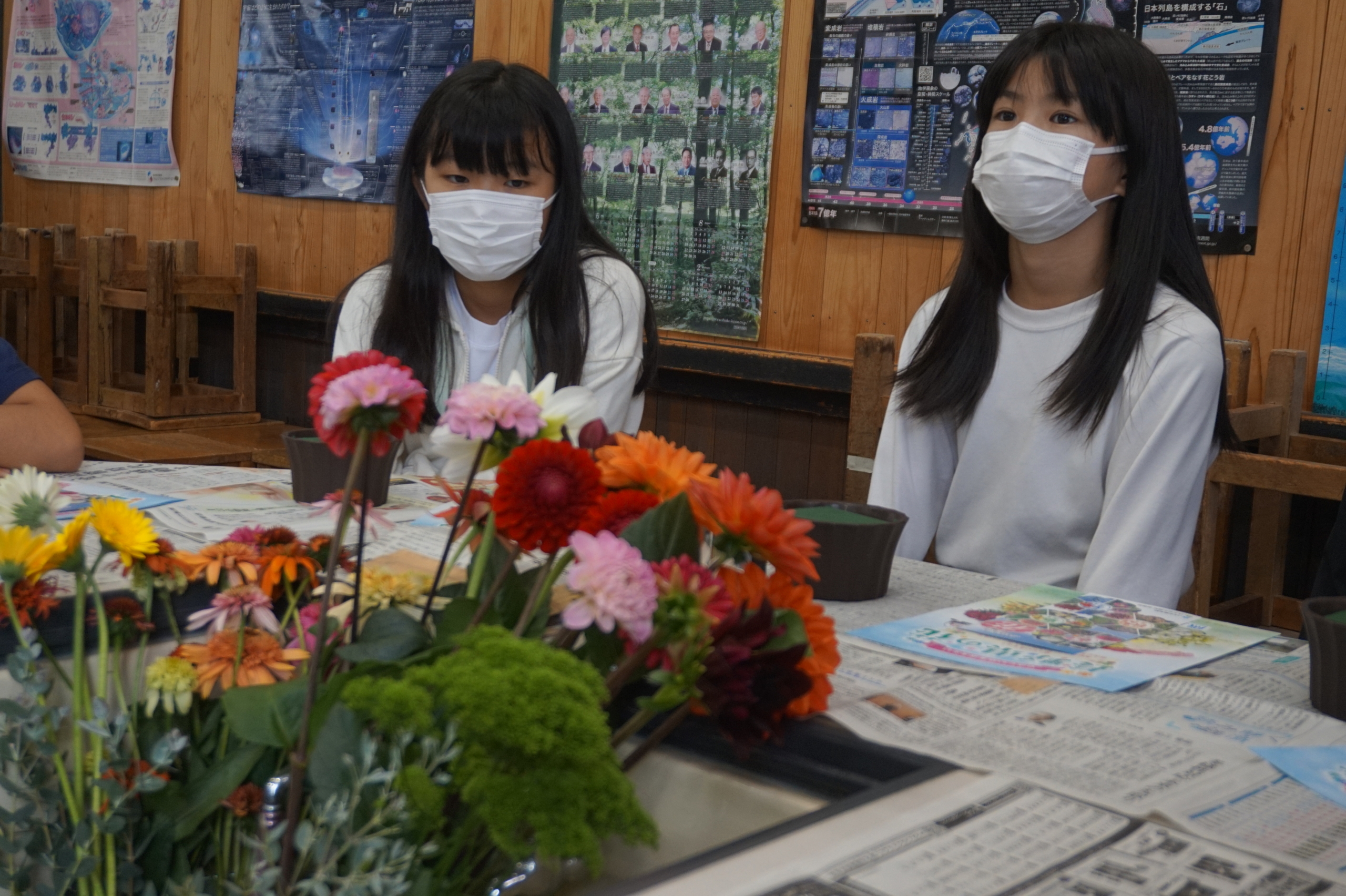 心をもってもらいたいということで、今回のような取り組みをしているそうです。県内で実施するのは19校。下伊那では、なんと追手町小学校のみ!とても貴重な体験をさせていただきました。南信州新聞にも掲載されました!「花屋さんに行ってどんな花があるのか見てみたいと思った。」「飯田市生産1位のダリアついて知れた。」「緊張したけどフラワーアレンジメントが楽しかった。」とそれぞれ感想を述べてくれました。