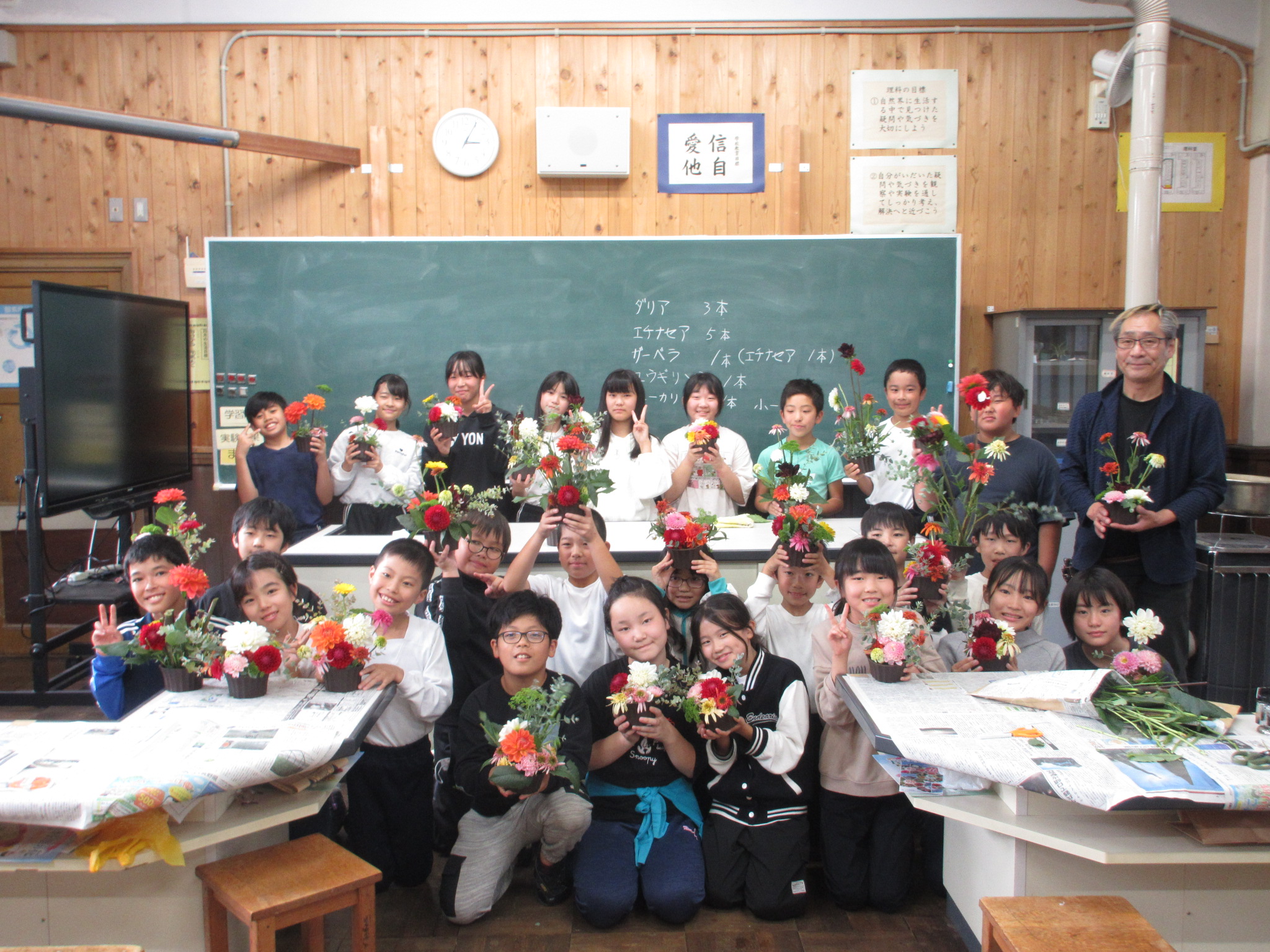 10月に花育の授業の一環としてフラワーアレンジメントの授業を行いました。長野県内の小学生に花について関