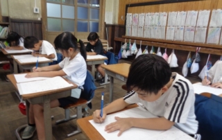 【9月19日】 書写の学習を行いました。去年よりも書く文字数が増え、レベルアップした文章を書きました。活動を始める前には、「消しゴムで消せないから緊張する」「一発勝負ってどきどきするね」といった声が聞 ... 詳しく読む