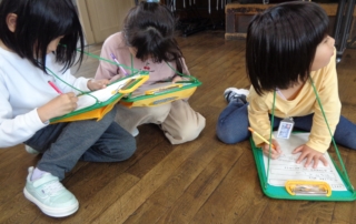 生活と国語の時間に、校内で見つけたものをクラスの仲間に伝える学習を行いました。まず始めは、自分が行きたいと思った教室に探検バッグを持って出かけ、見つけたものを記録しました。「みて!大きなテレビを見つけ ... 詳しく読む